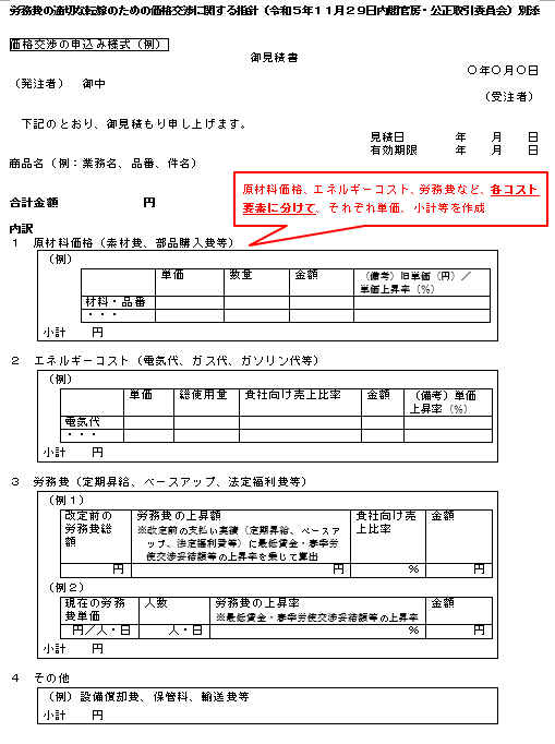 • 推奨フォーマットの使用: 巻末の「価格交渉の申込み様式(例)」を活用する。