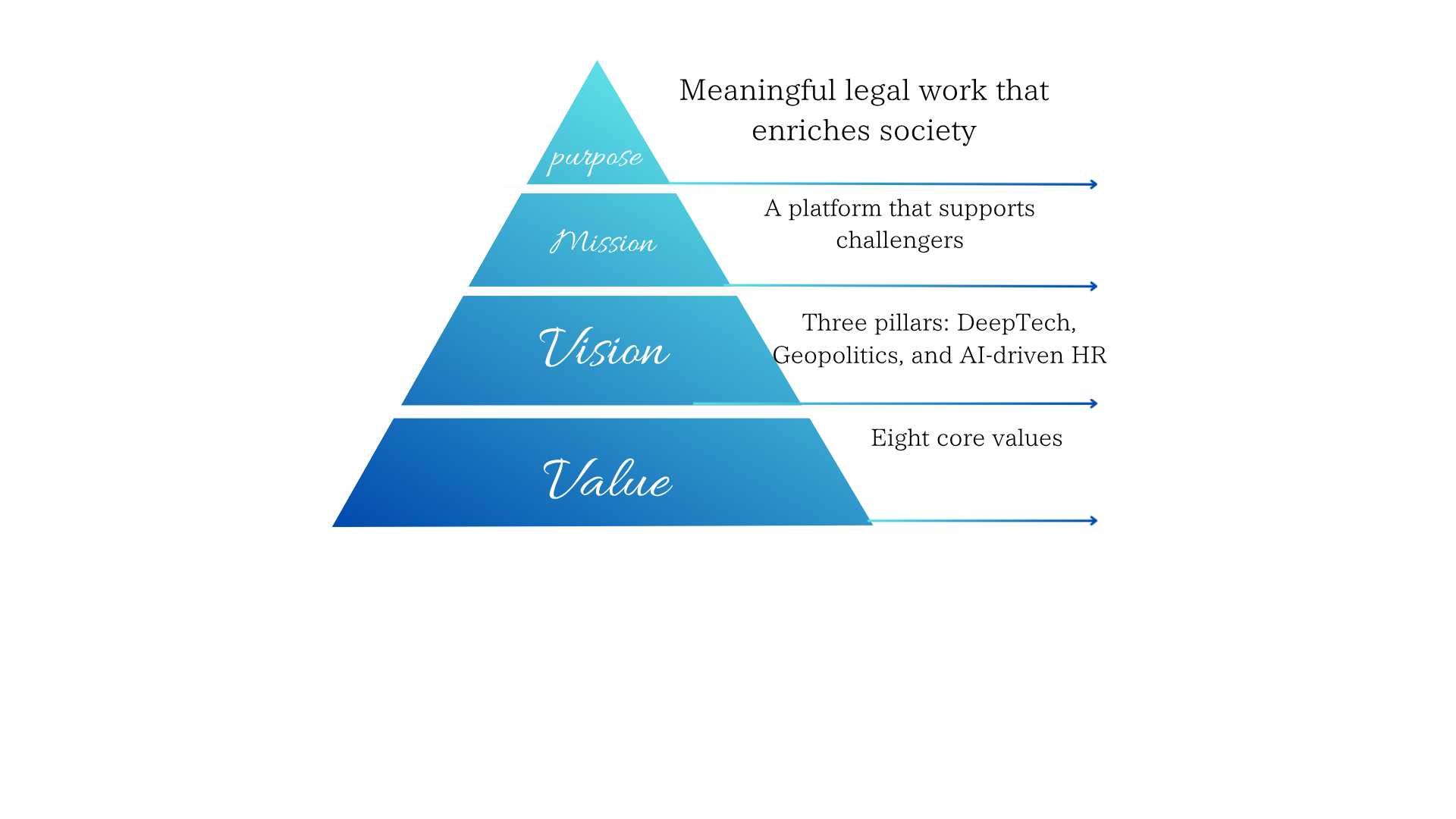 Nous bâtissons une plateforme juridique. Elle est pour les innovateurs. Or, la société change profondément. C’est pourquoi nous utilisons le pouvoir du droit. Notre but est simple. Nous voulons améliorer la durabilité des entreprises.